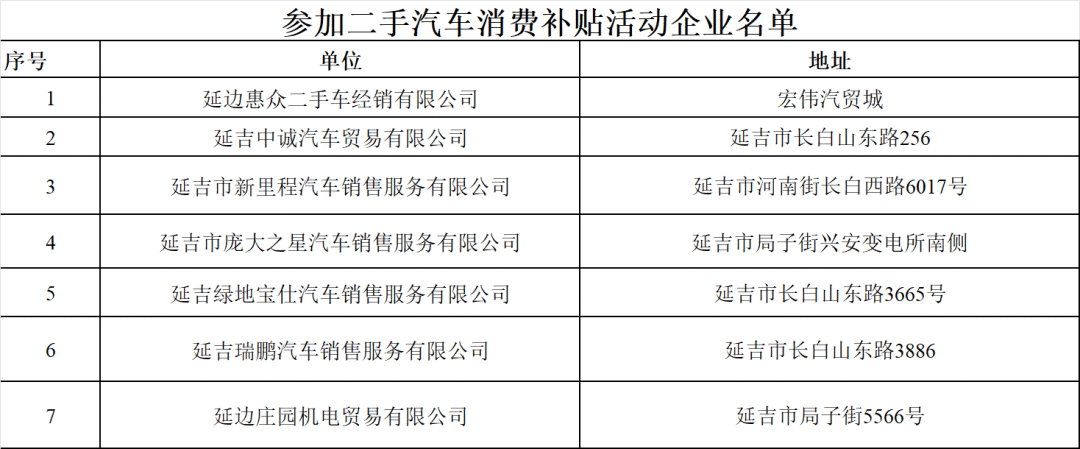 附件:參加二手汽車消費(fèi)補(bǔ)貼活動(dòng)企業(yè)名單