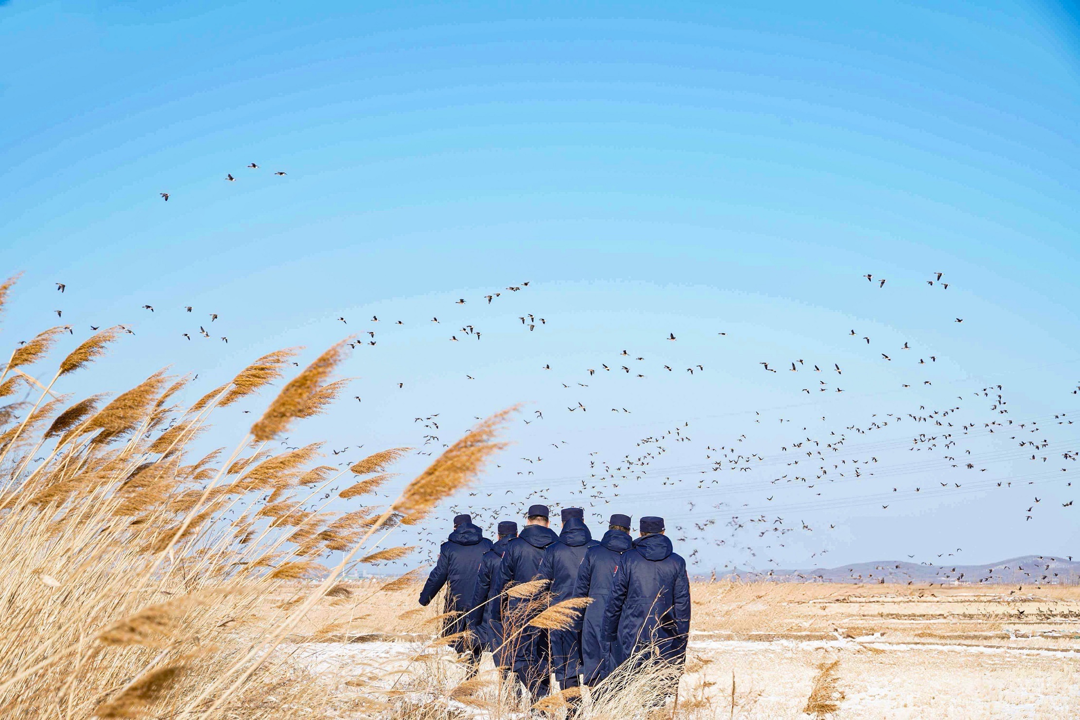 據(jù)了解,“護(hù)鳥巡護(hù)隊(duì)”隊(duì)員已連續(xù)七年利用勤務(wù)間隙開展實(shí)地巡邏,為候鳥補(bǔ)充飼料,深入濕地清理垃圾。他們?cè)趯?duì)過往車輛、人員進(jìn)行檢查的同時(shí),還會(huì)向攝影愛好者和游客宣傳野生動(dòng)物保護(hù)法規(guī),講解觀鳥注意事項(xiàng)。