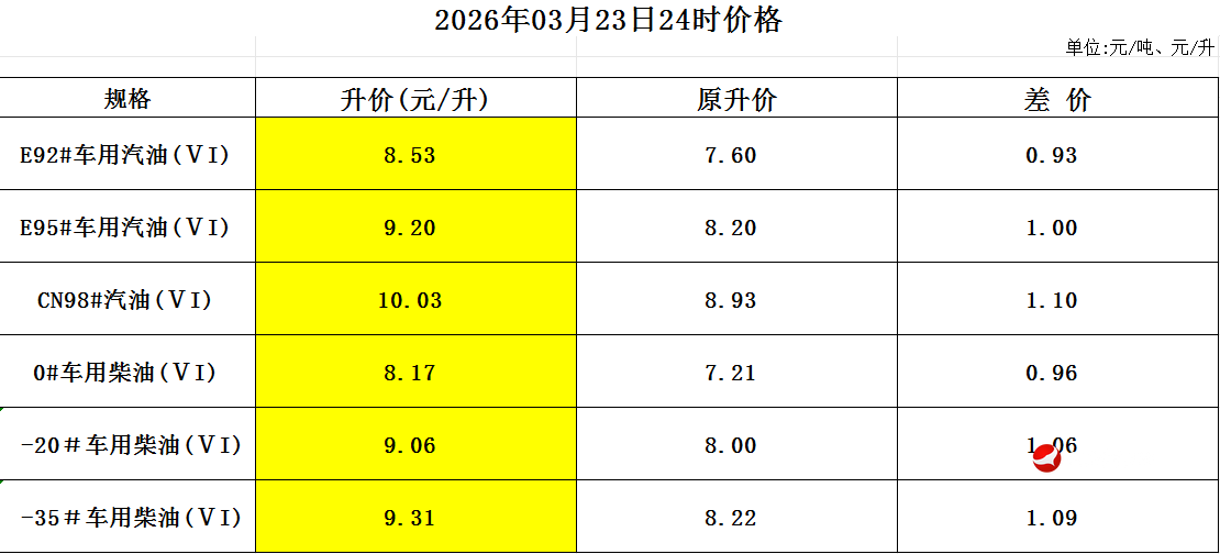 根據(jù)現(xiàn)行價(jià)格機(jī)制計(jì)算,自3月23日24時(shí)起,國內(nèi)汽、柴油價(jià)格(標(biāo)準(zhǔn)品)每噸分別應(yīng)上調(diào)2205元、2120元,調(diào)控后實(shí)際上調(diào)1160元、1115元。