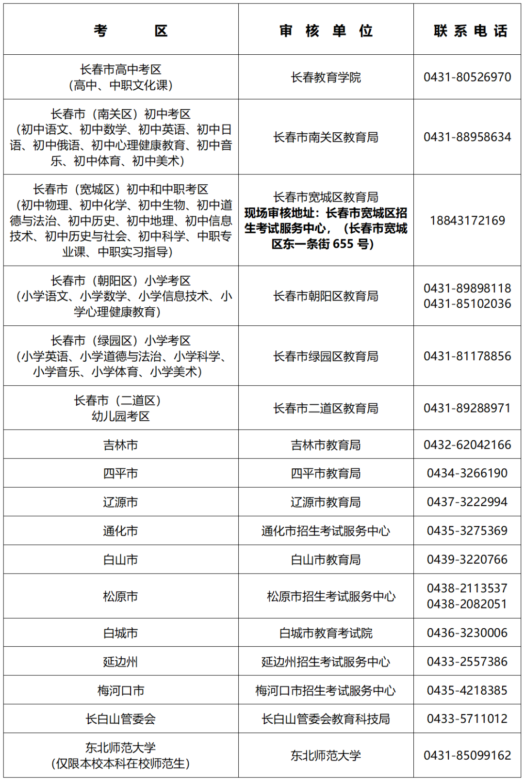 (2)全省報考中職專業(yè)課、中職實習(xí)指導(dǎo)的考生選擇長春市(寬城區(qū))初中和中職考區(qū),審核單位為長春市寬城區(qū)教育局;
